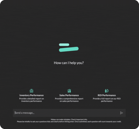 Matau solves the problem of getting stuck in complicated data. It turns confusing numbers into clear Data Insights. No more waiting for experts or struggling with hard-to-use tools. Matau's BI Chat makes it easy for everyone to get answers from their business data, speeding up decision-making and helping your business grow.
